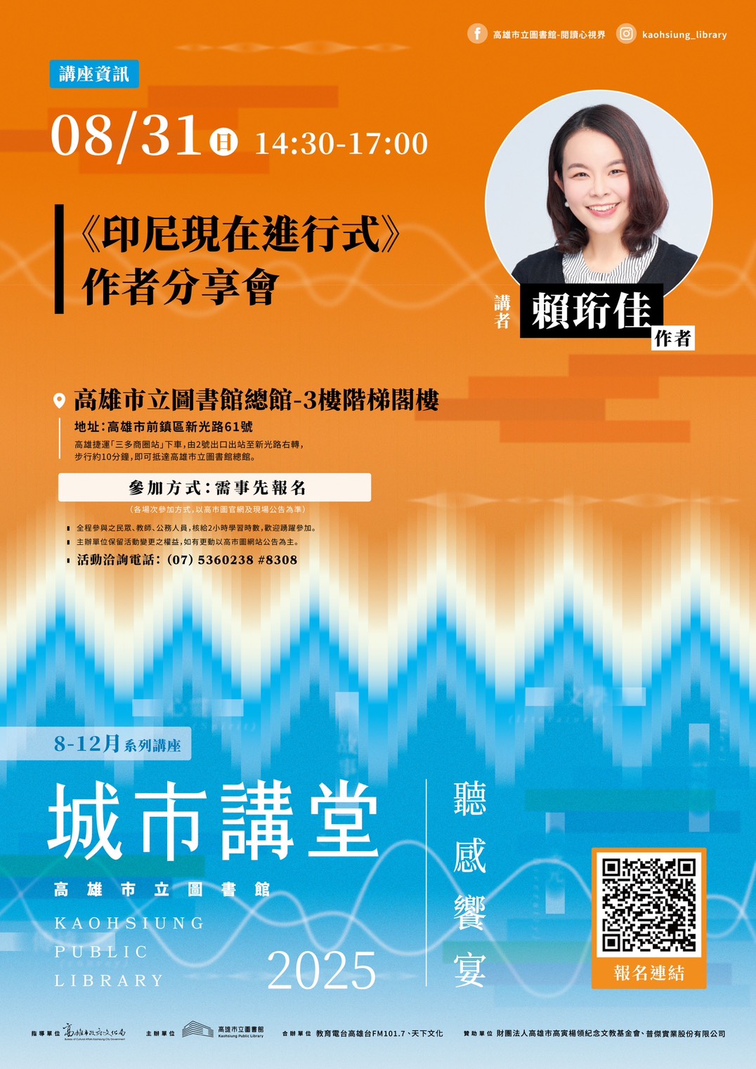 (五)8/31(日)14:30-17:00,講師:賴珩佳,講題:《印尼現在進行式》作者分享會,報名網址:https://reurl.cc/yR3y48 |